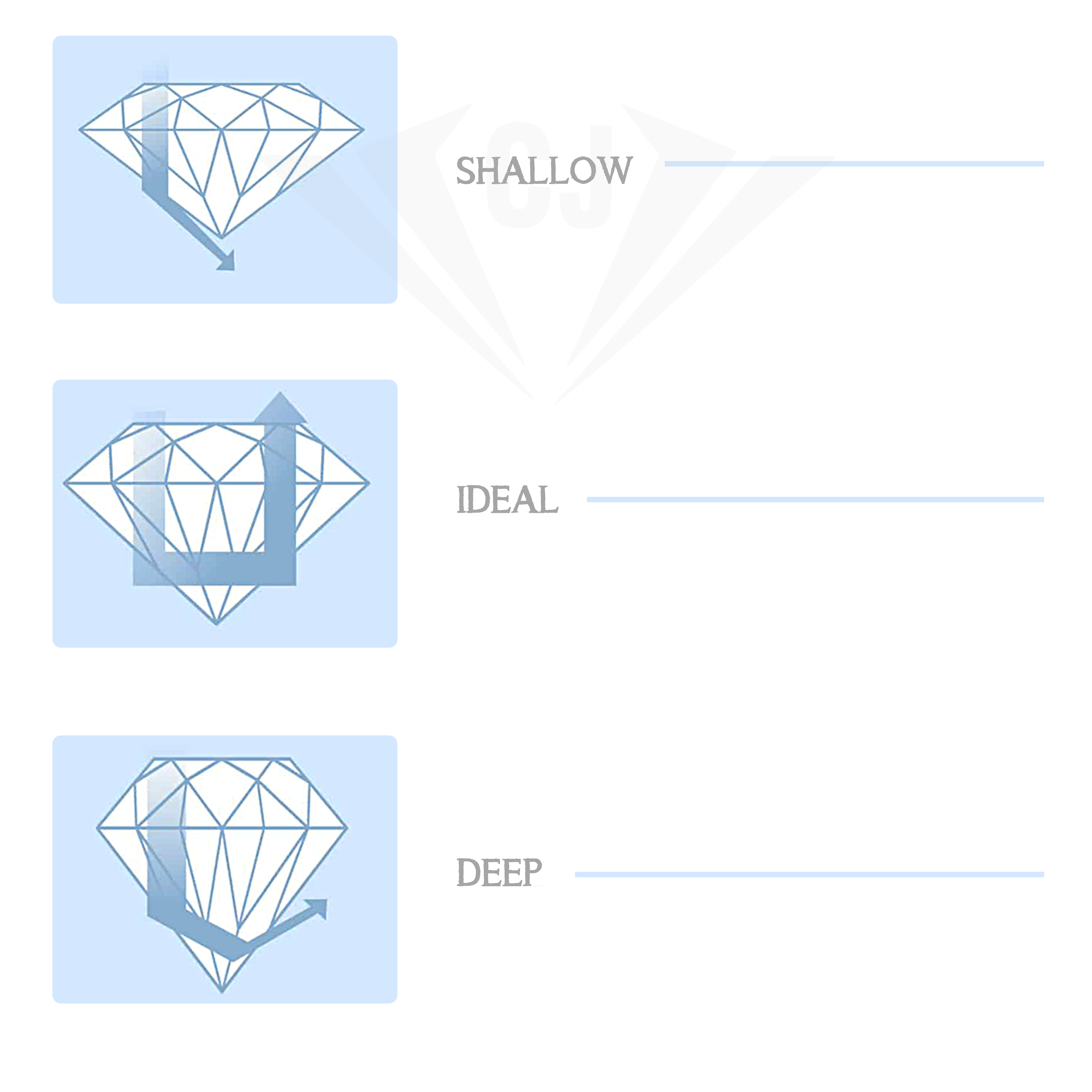 The cut of a diamond refers to its proportions. It is one of the most important factors to be considered while choosing diamonds. Cut is the most important of the 4Cs because it has the greatest influence on a diamond's sparkle. Even if a diamond has a perfect clarity and color grade, if it has a poor cut, it may appear dull. When a diamond is cut with the proper proportions, light is returned out of the top of the diamond (which gemologists refer to as the table). If it is cut too shallow, light leaks out of the bottom; too deep and it escapes out of the side. To maximize your budget, choose the highest diamond cut grade your budget allows. We suggest a cut grade of Very Good or better.
